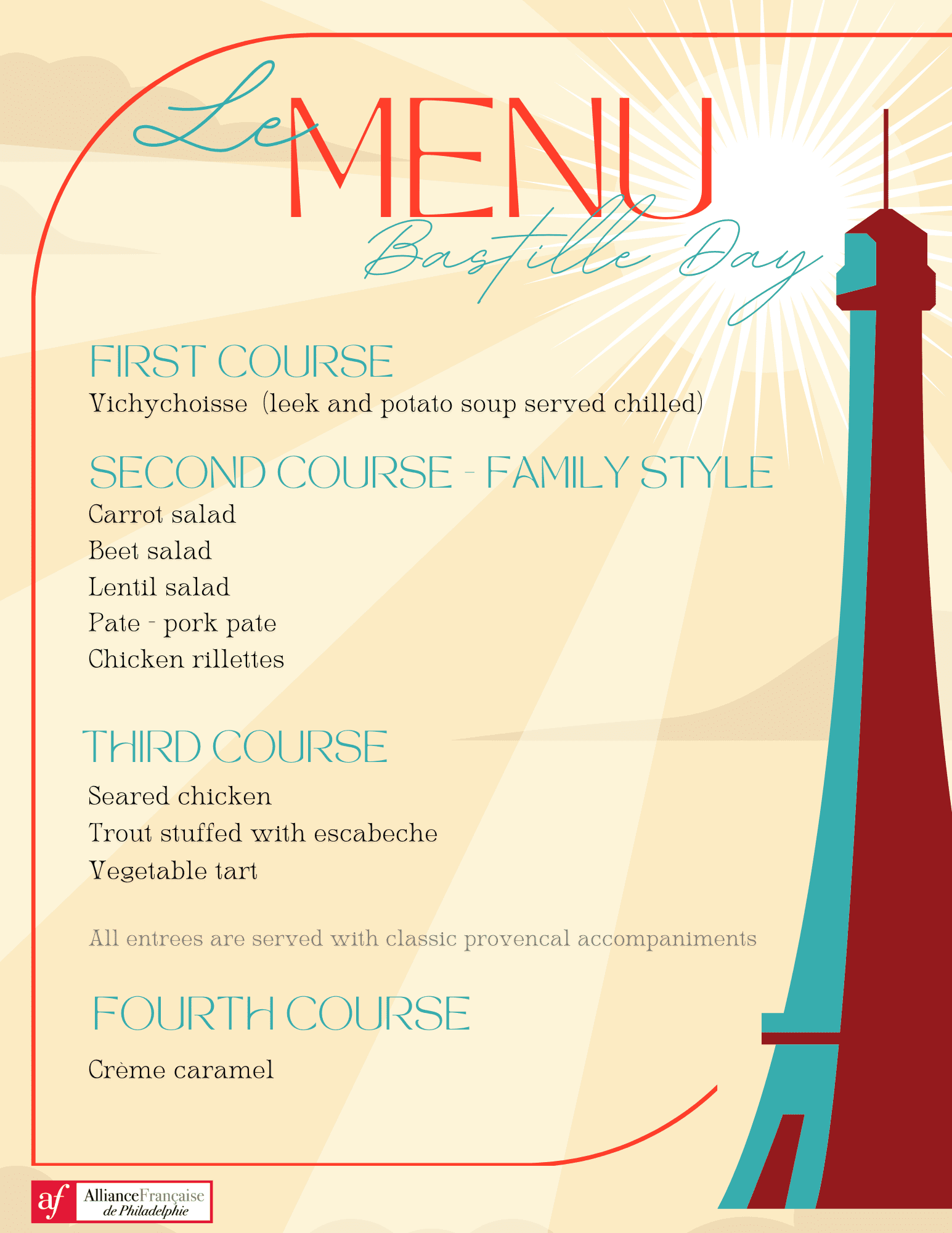 Come and enjoy a French meal designed just for Bastille Day. Welcome to Gabi's restaurant! It will be a good time to enjoy a good meal and meet the members of the Alliance Française!