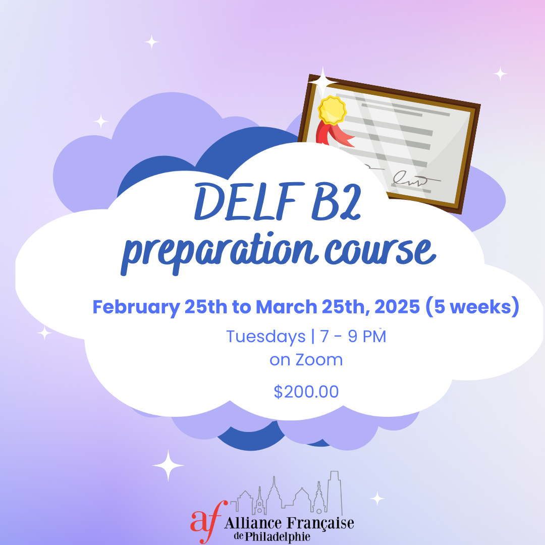 Alliance Française de Philadelphie is an official examination center for the DELF/DALF since 2020 and we are thrilled to offer preparation courses to help our candidates succeed!
