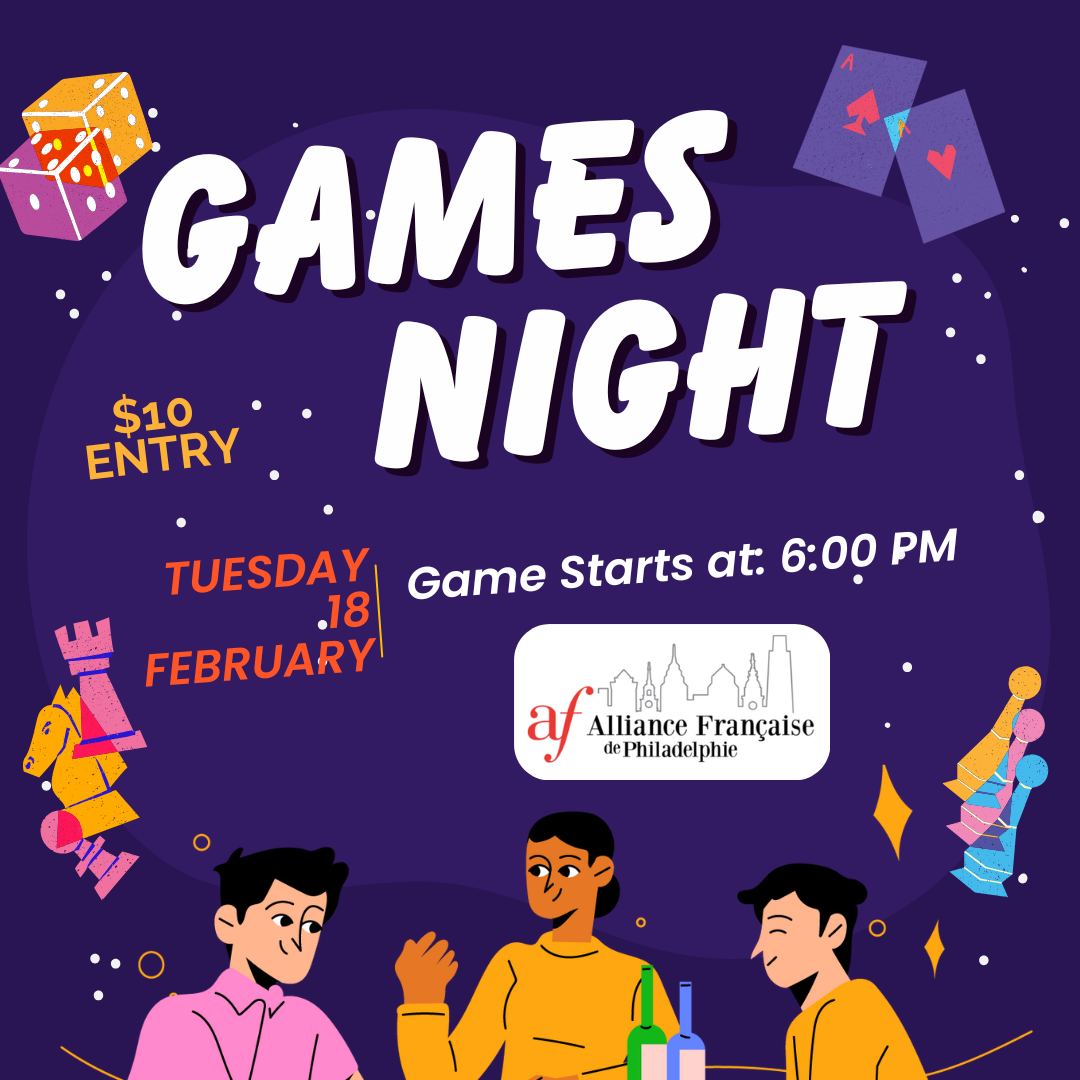 We will play games in English and French in a friendly atmosphere! Refreshments and chips are included.