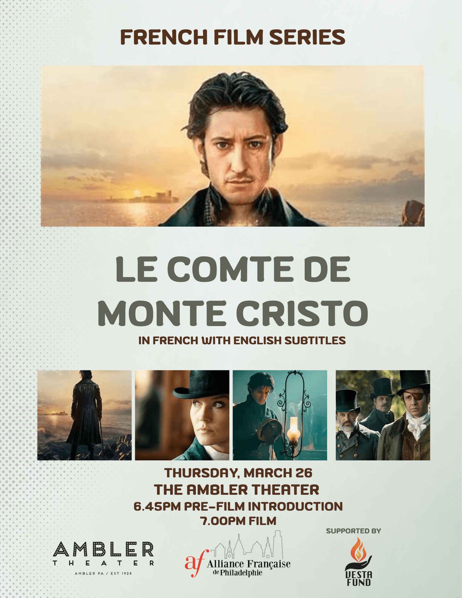 This March - Francophonie month, we will be screening THE COUNT OF MONTE-CRISTO (Le Comte de Monte-Cristo), celebrating
