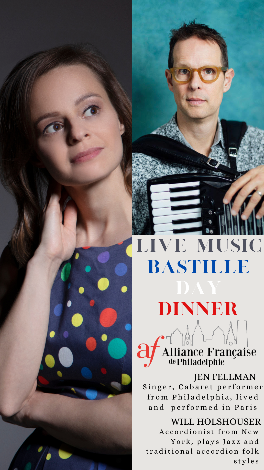 For those who could not attend or missed the live entertainment at our Bastille Day dinner in July, we are inviting Jen Fellman and Will Holshouser to perform their set of French songs at the Alliance Française de Philadelphie in a cabaret-style atmosphere.